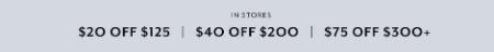 Stop by and enjoy up to $75 off when you spend $300 or more in store for a limited time.