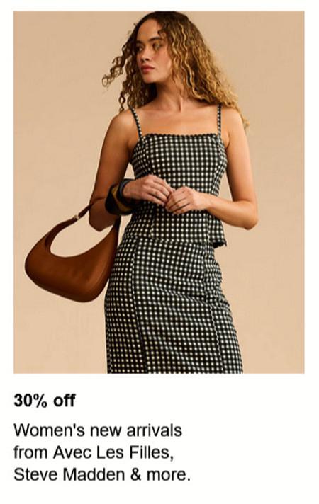 Get it now! Shop in-store and get 30% off women's new arrivals from Avec Les Filles, Steve Madden, and more.